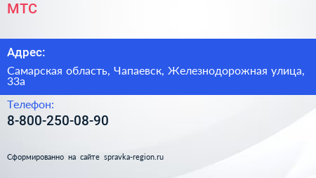 МТС по адресу Самарская область, Чапаевск, Железнодорожная улица, 33а в дальнейшем Организация, размещена в следующих категориях: