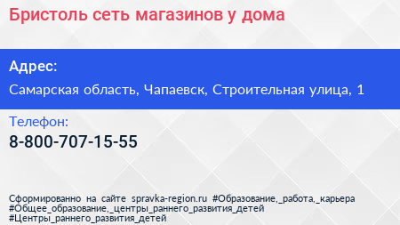 Бристоль, сеть магазинов у дома по адресу Самарская область, Чапаевск, Строительная улица, 1 в дальнейшем Организация, размещена в следующих категориях: