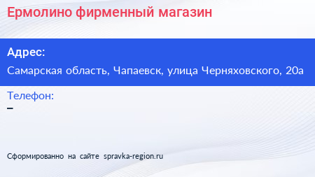 Ермолино, фирменный магазин по адресу Самарская область, Чапаевск, улица Черняховского, 20а в дальнейшем Организация, размещена в следующих категориях: