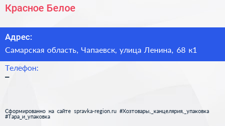 Красное & Белое по адресу Самарская область, Чапаевск, улица Ленина, 68 к1 в дальнейшем Организация, размещена в следующих категориях: