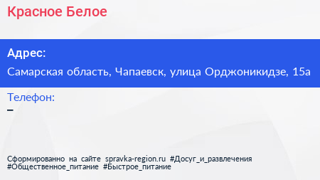 Красное & Белое по адресу Самарская область, Чапаевск, улица Орджоникидзе, 15а в дальнейшем Организация, размещена в следующих категориях: