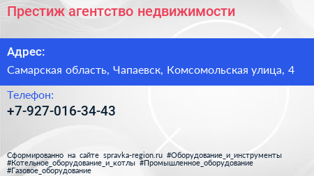 Престиж, агентство недвижимости по адресу Самарская область, Чапаевск, Комсомольская улица, 4 в дальнейшем Организация, размещена в следующих категориях: