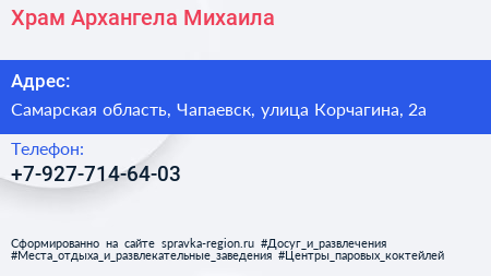 Храм Архангела Михаила по адресу Самарская область, Чапаевск, улица Корчагина, 2а в дальнейшем Организация, размещена в следующих категориях:
