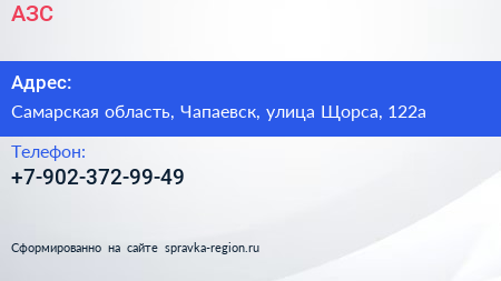 АЗС по адресу Самарская область, Чапаевск, улица Щорса, 122а в дальнейшем Организация, размещена в следующих категориях: