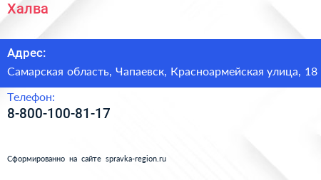 Халва по адресу Самарская область, Чапаевск, Красноармейская улица, 18 в дальнейшем Организация, размещена в следующих категориях: