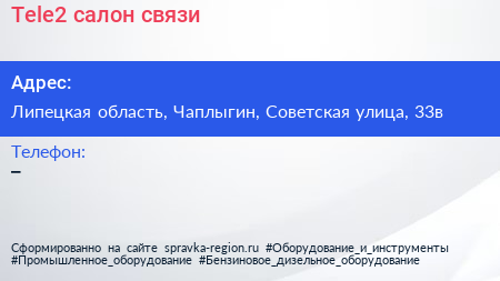 Tele2, салон связи по адресу Липецкая область, Чаплыгин, Советская улица, 33в в дальнейшем Организация, размещена в следующих категориях:
