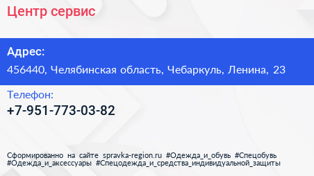Центр сервис по адресу 456440, Челябинская область, Чебаркуль, Ленина, 23 в дальнейшем Организация, размещена в следующих категориях: