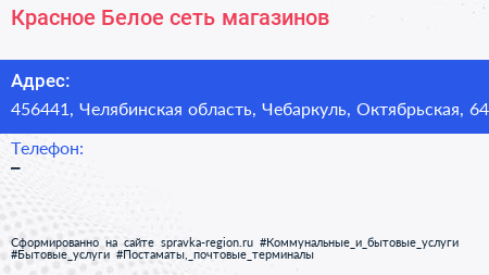 Красное & Белое, сеть магазинов по адресу 456441, Челябинская область, Чебаркуль, Октябрьская, 64 в дальнейшем Организация, размещена в следующих категориях: