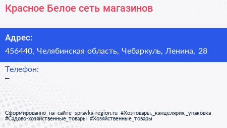 Красное & Белое, сеть магазинов по адресу 456440, Челябинская область, Чебаркуль, Ленина, 28 в дальнейшем Организация, размещена в следующих категориях: