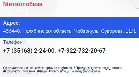 Металлобаза по адресу 456440, Челябинская область, Чебаркуль, Суворова, 11/1 в дальнейшем Организация, размещена в следующих категориях: