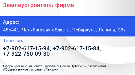 Землеустроитель, фирма по адресу 456441, Челябинская область, Чебаркуль, Ленина, 39а в дальнейшем Организация, размещена в следующих категориях: