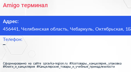Amigo, терминал по адресу 456441, Челябинская область, Чебаркуль, Октябрьская, 1Б в дальнейшем Организация, размещена в следующих категориях: