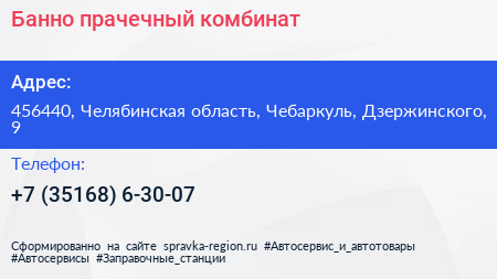 Банно-прачечный комбинат по адресу 456440, Челябинская область, Чебаркуль, Дзержинского, 9 в дальнейшем Организация, размещена в следующих категориях: