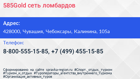 585Gold, сеть ломбардов по адресу 428000, Чувашия, Чебоксары, Калинина, 105а в дальнейшем Организация, размещена в следующих категориях: