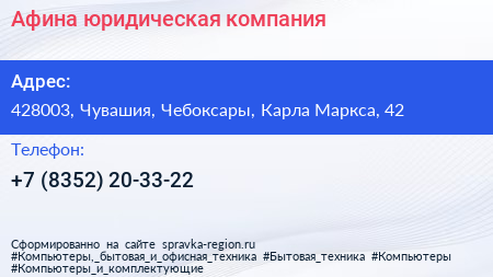 Афина, юридическая компания по адресу 428003, Чувашия, Чебоксары, Карла Маркса, 42 в дальнейшем Организация, размещена в следующих категориях: