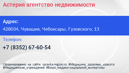 Астерия, агентство недвижимости по адресу 428034, Чувашия, Чебоксары, Гузовского, 13 в дальнейшем Организация, размещена в следующих категориях: