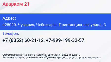 Аварком 21 по адресу 428020, Чувашия, Чебоксары, Пристанционная улица, 3 в дальнейшем Организация, размещена в следующих категориях: