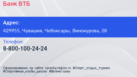Банк ВТБ по адресу 429955, Чувашия, Чебоксары, Винокурова, 28 в дальнейшем Организация, размещена в следующих категориях:
