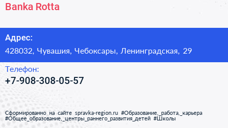 Banka Rotta по адресу 428032, Чувашия, Чебоксары, Ленинградская, 29 в дальнейшем Организация, размещена в следующих категориях: