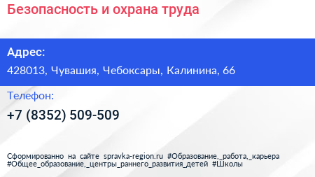 Безопасность и охрана труда по адресу 428013, Чувашия, Чебоксары, Калинина, 66 в дальнейшем Организация, размещена в следующих категориях: