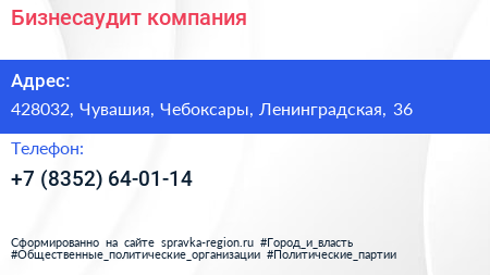 Бизнесаудит, компания по адресу 428032, Чувашия, Чебоксары, Ленинградская, 36 в дальнейшем Организация, размещена в следующих категориях: