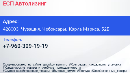 ЕСП Автолизинг по адресу 428003, Чувашия, Чебоксары, Карла Маркса, 52Б в дальнейшем Организация, размещена в следующих категориях: