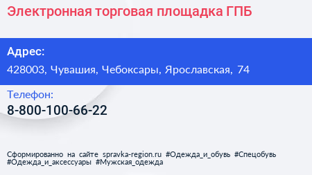 Электронная торговая площадка ГПБ по адресу 428003, Чувашия, Чебоксары, Ярославская, 74 в дальнейшем Организация, размещена в следующих категориях: