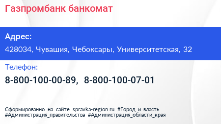 Газпромбанк, банкомат по адресу 428034, Чувашия, Чебоксары, Университетская, 32 в дальнейшем Организация, размещена в следующих категориях: