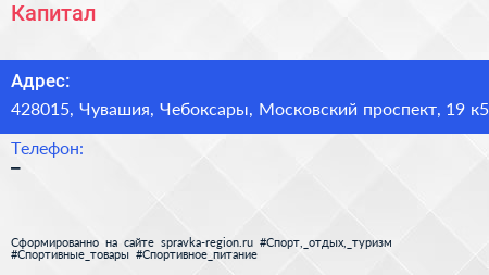 Капитал по адресу 428015, Чувашия, Чебоксары, Московский проспект, 19 к5 в дальнейшем Организация, размещена в следующих категориях: