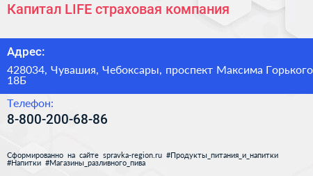 Капитал LIFE, страховая компания по адресу 428034, Чувашия, Чебоксары, проспект Максима Горького, 18Б в дальнейшем Организация, размещена в следующих категориях: