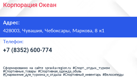 Корпорация Океан по адресу 428003, Чувашия, Чебоксары, Маркова, 8 к1 в дальнейшем Организация, размещена в следующих категориях: