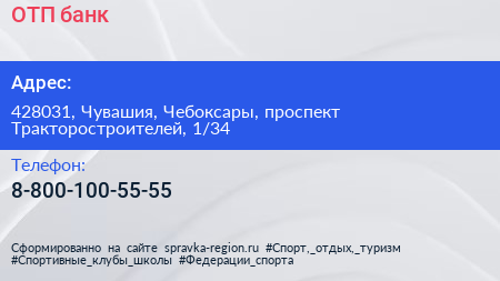 ОТП банк по адресу 428031, Чувашия, Чебоксары, проспект Тракторостроителей, 1/34 в дальнейшем Организация, размещена в следующих категориях: