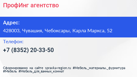 ПрофИнг, агентство по адресу 428003, Чувашия, Чебоксары, Карла Маркса, 52 в дальнейшем Организация, размещена в следующих категориях: