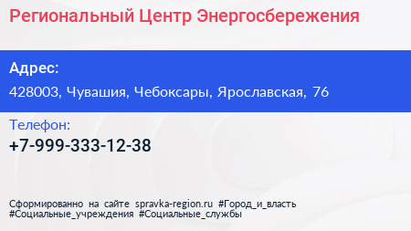 Региональный Центр Энергосбережения по адресу 428003, Чувашия, Чебоксары, Ярославская, 76 в дальнейшем Организация, размещена в следующих категориях: