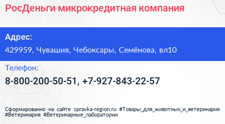РосДеньги, микрокредитная компания по адресу 429959, Чувашия, Чебоксары, Семёнова, вл10 в дальнейшем Организация, размещена в следующих категориях: