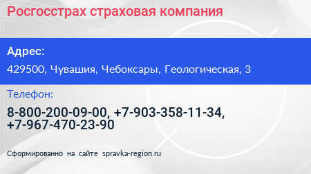 Росгосстрах, страховая компания по адресу 429500, Чувашия, Чебоксары, Геологическая, 3 в дальнейшем Организация, размещена в следующих категориях:
