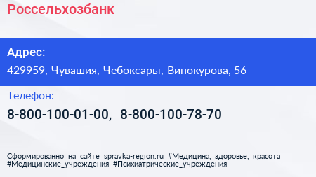 Россельхозбанк по адресу 429959, Чувашия, Чебоксары, Винокурова, 56 в дальнейшем Организация, размещена в следующих категориях: