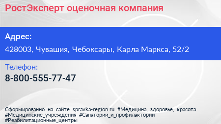 РостЭксперт, оценочная компания по адресу 428003, Чувашия, Чебоксары, Карла Маркса, 52/2 в дальнейшем Организация, размещена в следующих категориях: