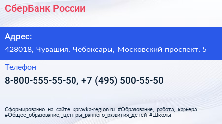 СберБанк России по адресу 428018, Чувашия, Чебоксары, Московский проспект, 5 в дальнейшем Организация, размещена в следующих категориях: