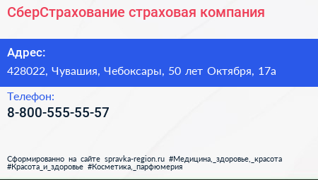 СберСтрахование, страховая компания по адресу 428022, Чувашия, Чебоксары, 50 лет Октября, 17а в дальнейшем Организация, размещена в следующих категориях: