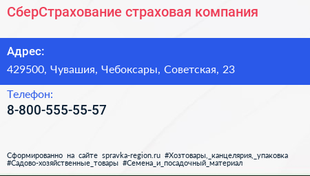 СберСтрахование, страховая компания по адресу 429500, Чувашия, Чебоксары, Советская, 23 в дальнейшем Организация, размещена в следующих категориях: