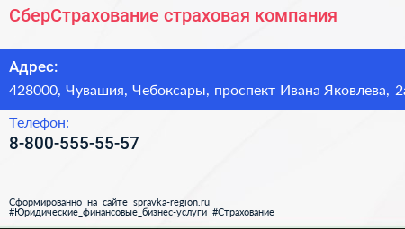 СберСтрахование, страховая компания по адресу 428000, Чувашия, Чебоксары, проспект Ивана Яковлева, 2а в дальнейшем Организация, размещена в следующих категориях: