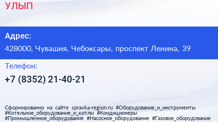 УЛЫП по адресу 428000, Чувашия, Чебоксары, проспект Ленина, 39 в дальнейшем Организация, размещена в следующих категориях: