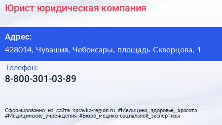 Юрист, юридическая компания по адресу 428014, Чувашия, Чебоксары, площадь Скворцова, 1 в дальнейшем Организация, размещена в следующих категориях: