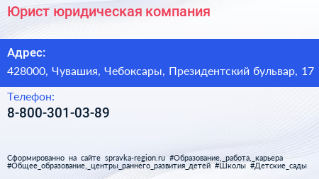 Юрист, юридическая компания по адресу 428000, Чувашия, Чебоксары, Президентский бульвар, 17 в дальнейшем Организация, размещена в следующих категориях: