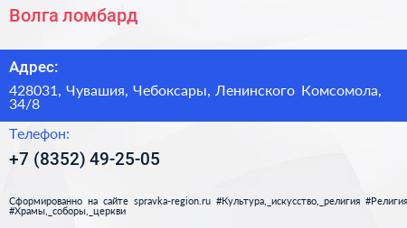 Волга ломбард по адресу 428031, Чувашия, Чебоксары, Ленинского Комсомола, 34/8 в дальнейшем Организация, размещена в следующих категориях: