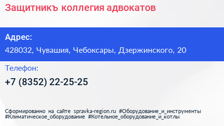 Защитникъ, коллегия адвокатов по адресу 428032, Чувашия, Чебоксары, Дзержинского, 20 в дальнейшем Организация, размещена в следующих категориях: