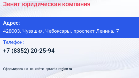 Зенит, юридическая компания по адресу 428003, Чувашия, Чебоксары, проспект Ленина, 7 в дальнейшем Организация, размещена в следующих категориях: