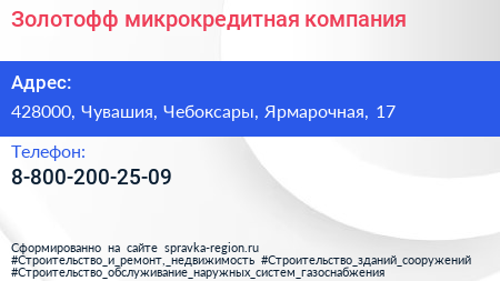 Золотофф, микрокредитная компания по адресу 428000, Чувашия, Чебоксары, Ярмарочная, 17 в дальнейшем Организация, размещена в следующих категориях: