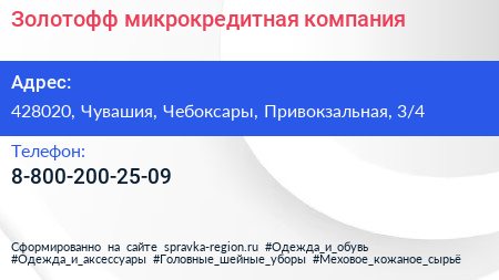 Золотофф, микрокредитная компания по адресу 428020, Чувашия, Чебоксары, Привокзальная, 3/4 в дальнейшем Организация, размещена в следующих категориях: